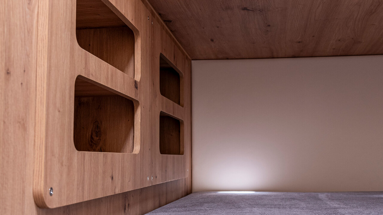 - Gniazda 230V i USB w mesie i każdej kabinie
