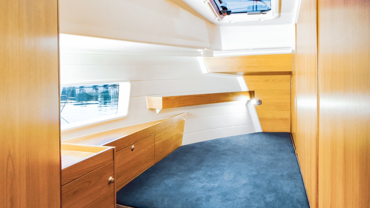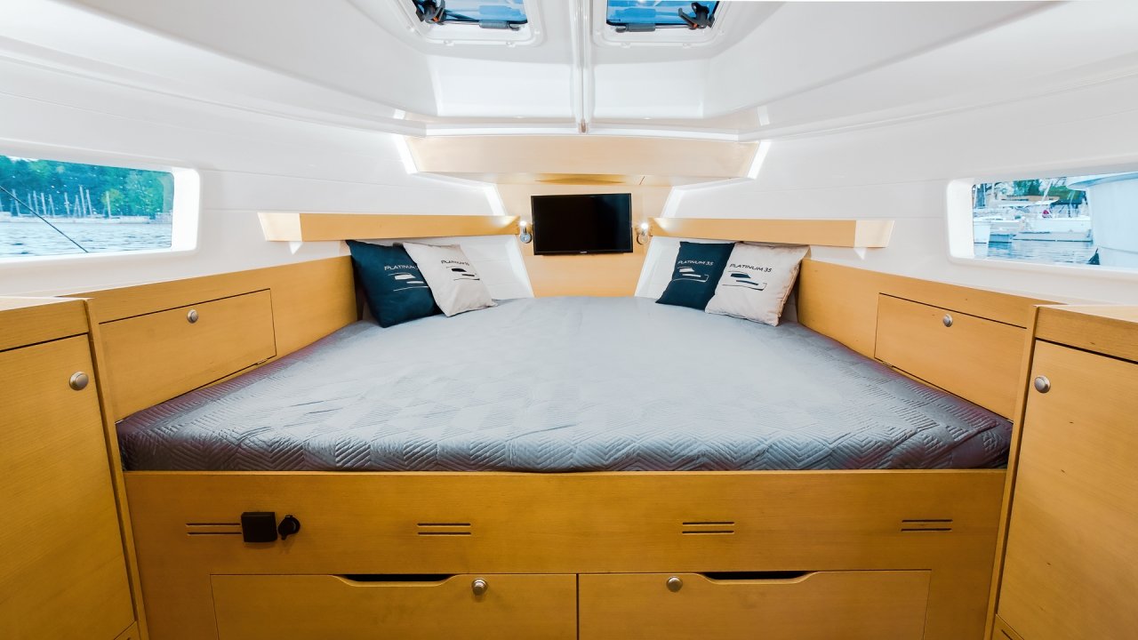 Część nocna, znajdująca się pod pokładem, to trzy oddzielne, zamykane, dwuosobowe kabiny zapewniające komfort i prywatność. Dzięki nim na jachcie może spać i mieszkać 6 osób (8 osób jeśli wykorzystamy dodatkową koję w strefie dziennej). Każda kabina wyposażona jest w szafki i bakisty, oświetlenie LED oraz porty USB i 12V dające możliwość naładowania wszystkich urządzeń elektronicznych. Ponad to, dostęp do jednej z łazienek jest ekskluzywnie wydzielony dla gości mieszkających w kabinie dziobowej. Wejście do drugiej łazienki znajduje się w korytarzu łączącym wszystkie kabiny. Obie łazienki są tak samo wyposażone i posiadają prysznic z ciepła i zimną wodą, pompę wyrzutową, zlew, oraz morską elektryczną toaletę.