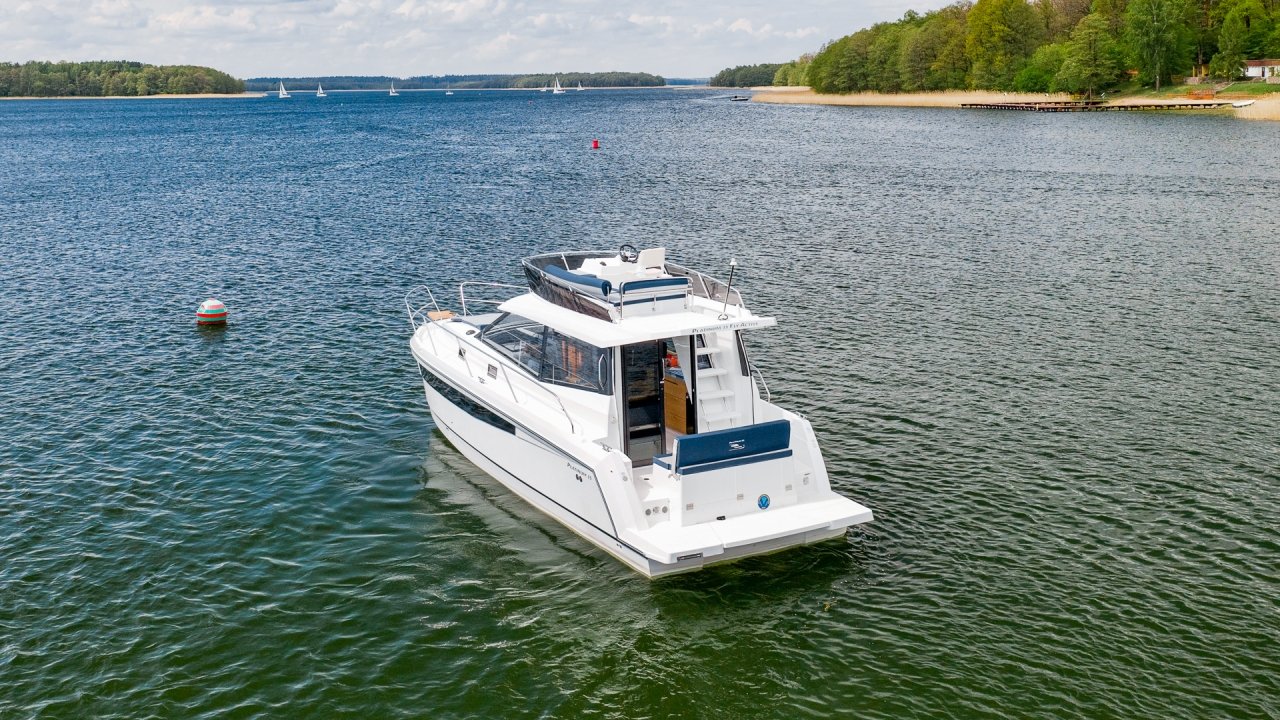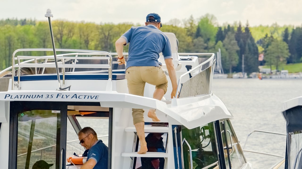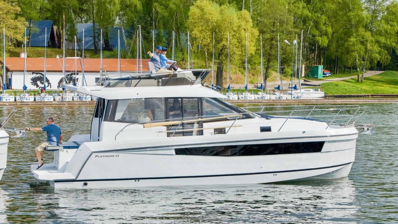 Jacht Platinum 35 Fly Active idealnie sprawdzi się podczas rodzinnego rejsu – jest bardzo stabilny i bezpieczny oraz ma doskonałą komunikacją po pokładzie (szerokie burty i relingi). Jednostka wyposażona jest we wszystkie urządzenia poprawiające bezpieczeństwo i wygodę pływania. Przy manewrach portowych pomoże mocny i niezawodny silnik diesla o mocy 39KM firmy Yanmar oraz dwa stery strumieniowe. Nawigowanie po Wielkich Jeziorach Mazurskich ułatwi ploter wyposażony w mapy oraz głębokościomierz. Jacht Platinum 35 Fly Active jest dostępny do czarteru bez uprawnień, jednak zdecydowanie preferujemy, żeby sternik posiadał uprawnienia minimum „Sternika motorowodnego”.