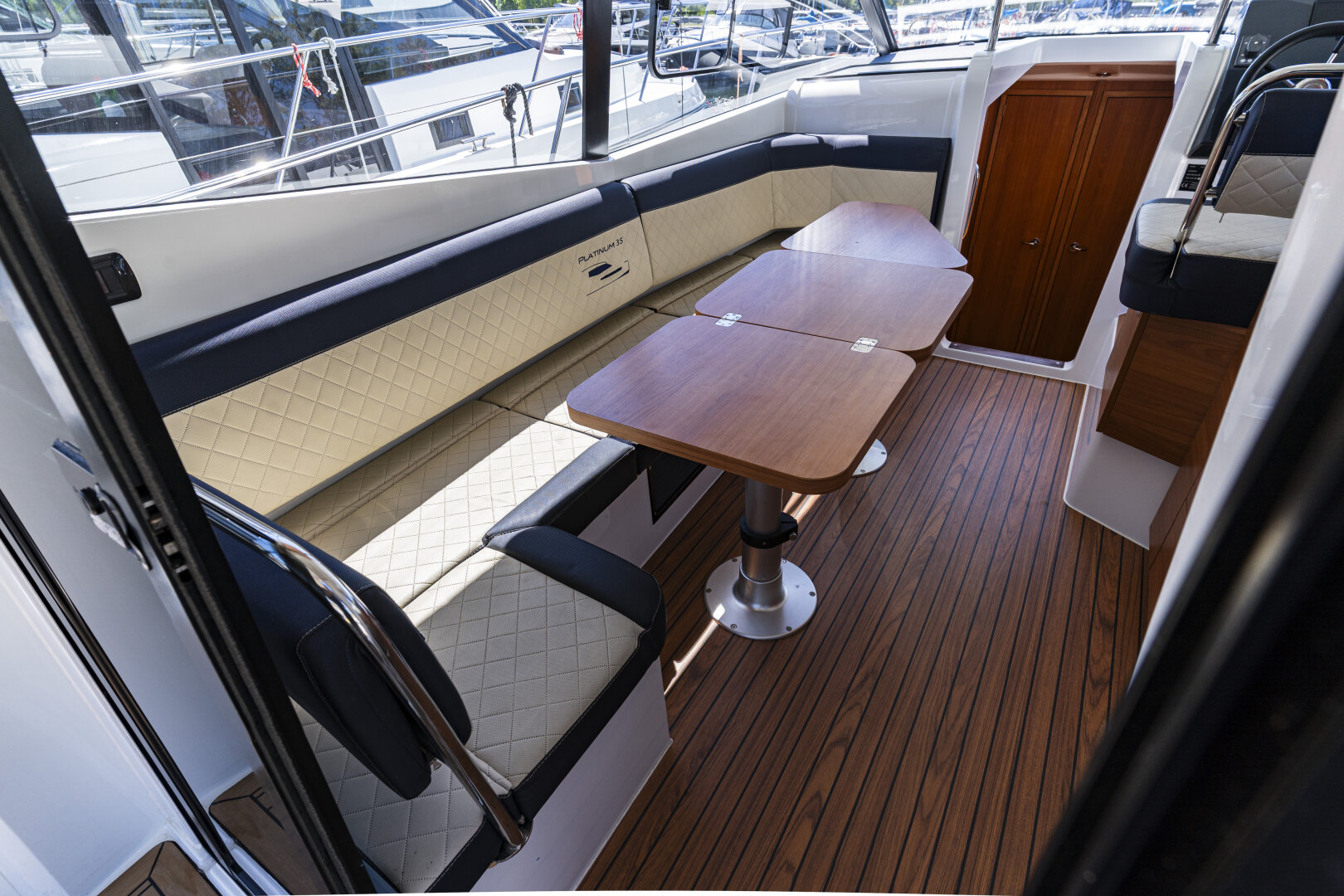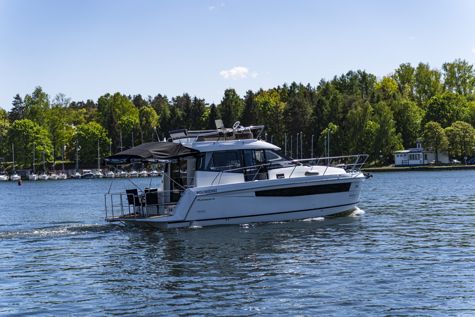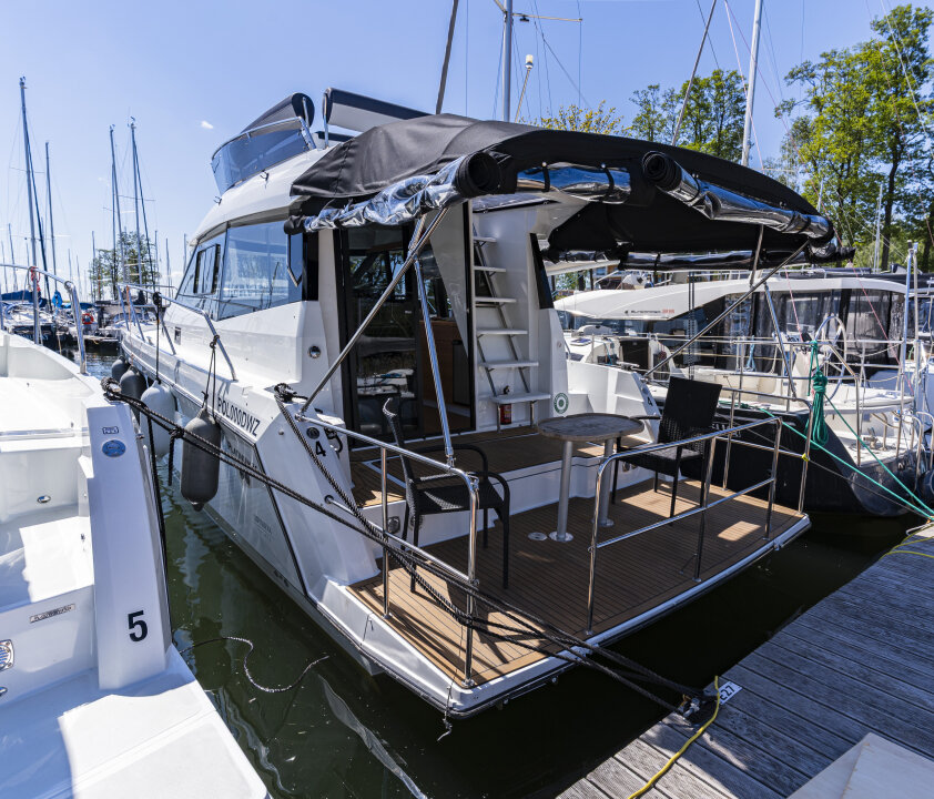 Platinum 35 Fly Active IV – Exclusive "Don Omadreno" to komfortowy jacht półślizgowy dla 8–10 osób, idealny na rodzinne rejsy po Mazurach.