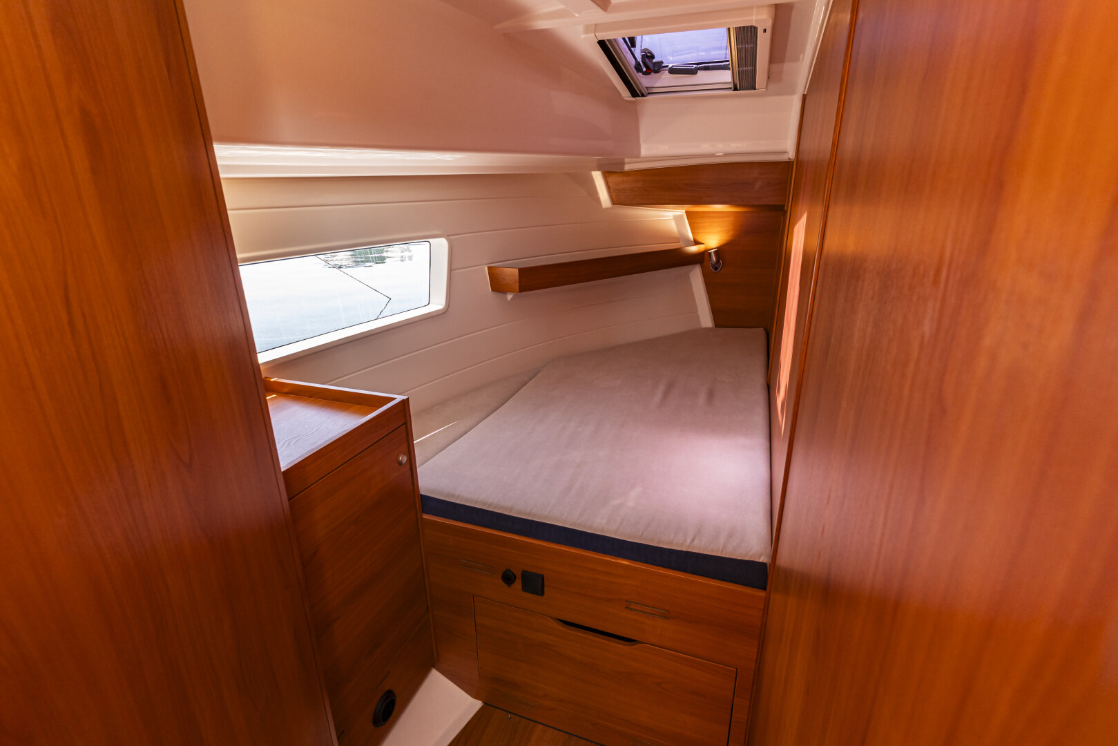 • 4 zamykane kabiny dwuosobowe z szafkami, oświetleniem LED i portami USB/12V