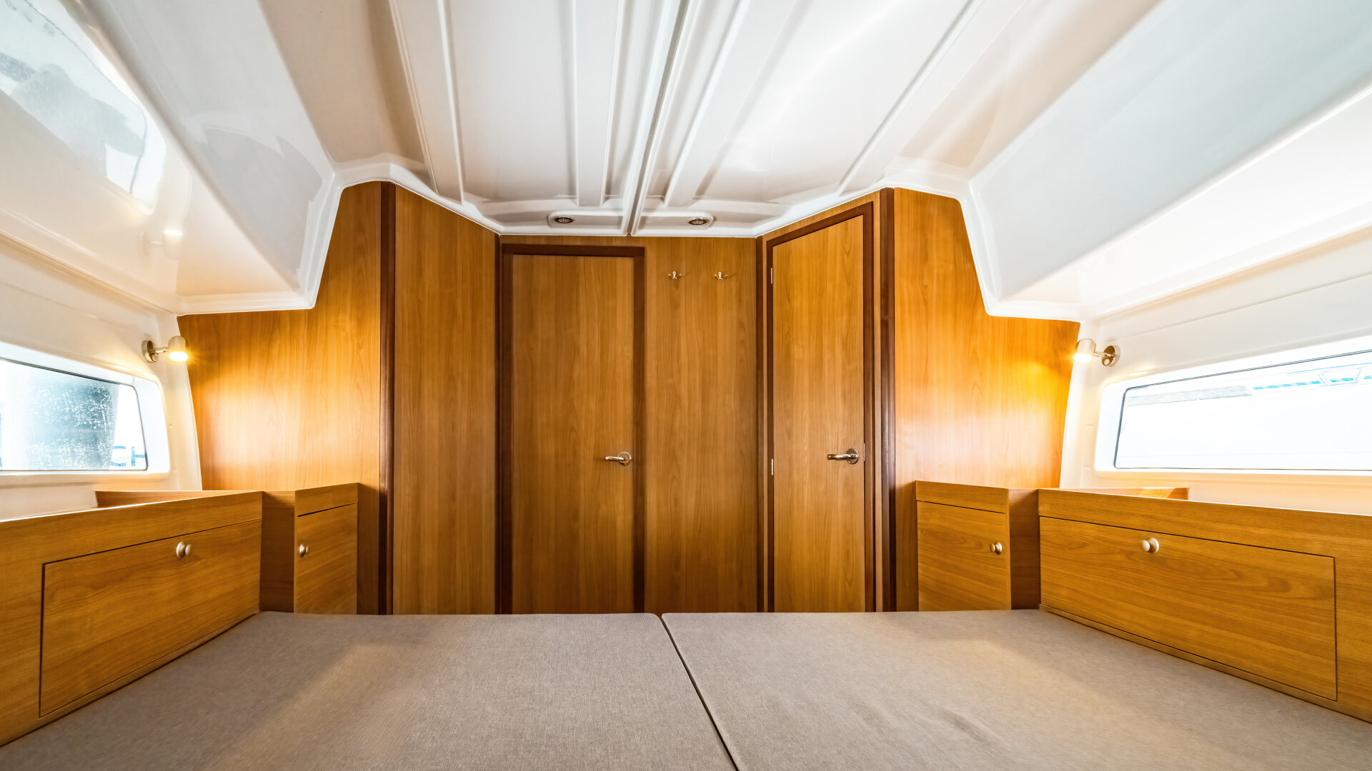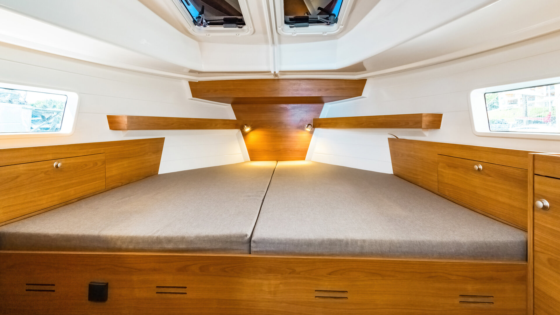 • 3 kabiny dwuosobowe z szafkami, portami USB i oświetleniem LED