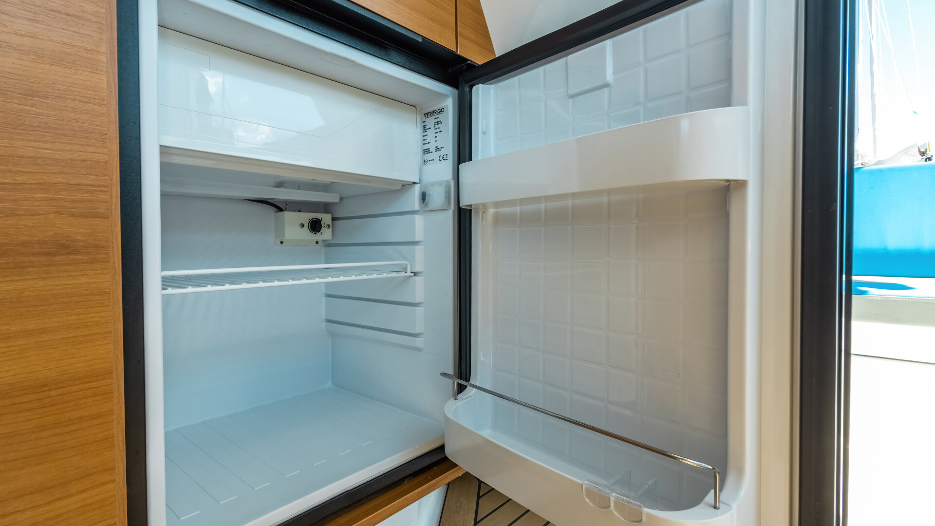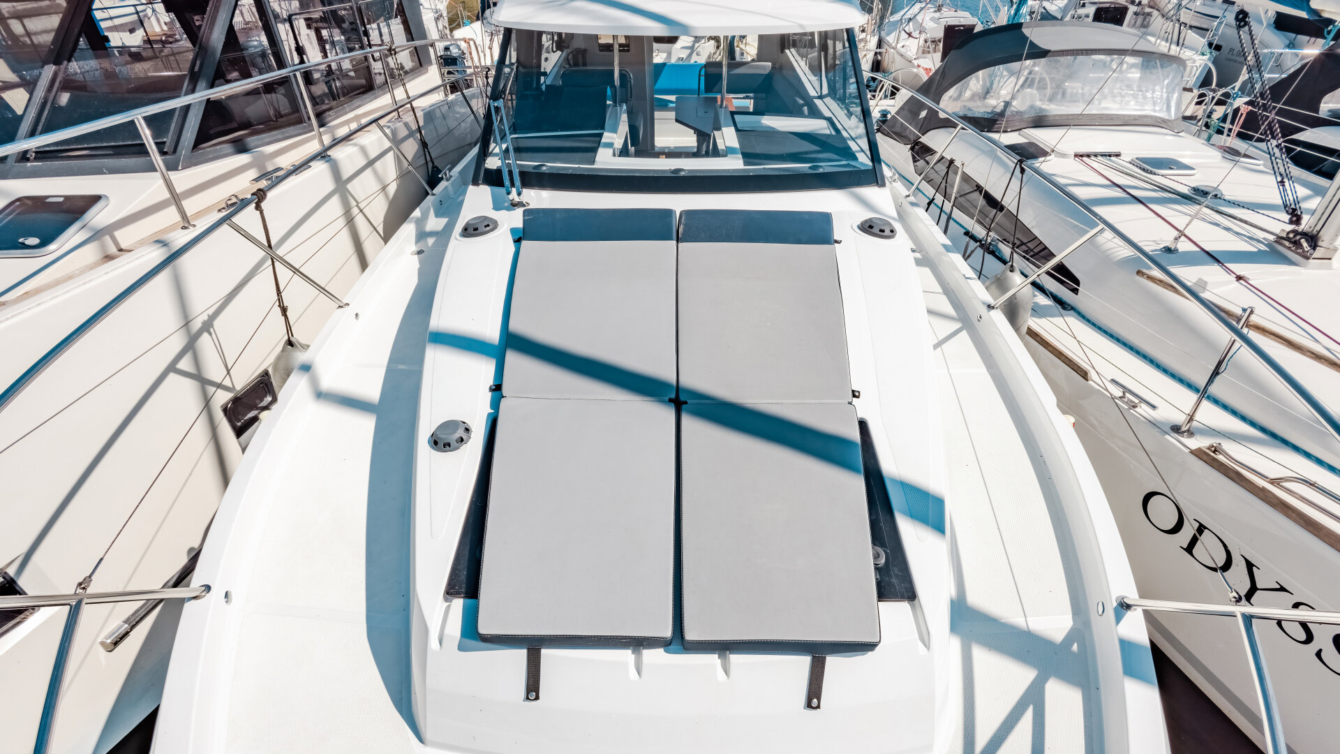 Jednostka jest stabilna i bezpieczna, z szerokimi burtami i relingami. Czarter możliwy bez patentu, ale rekomendujemy podstawowe uprawnienia.