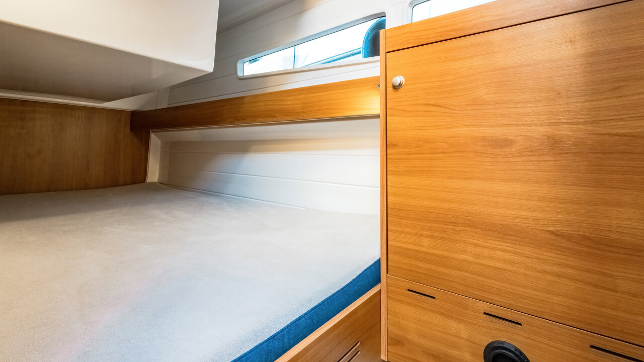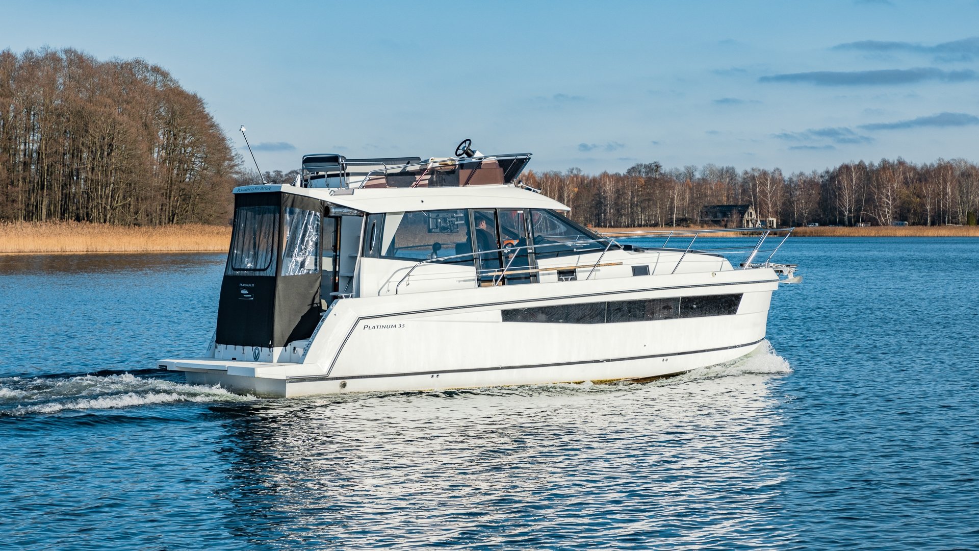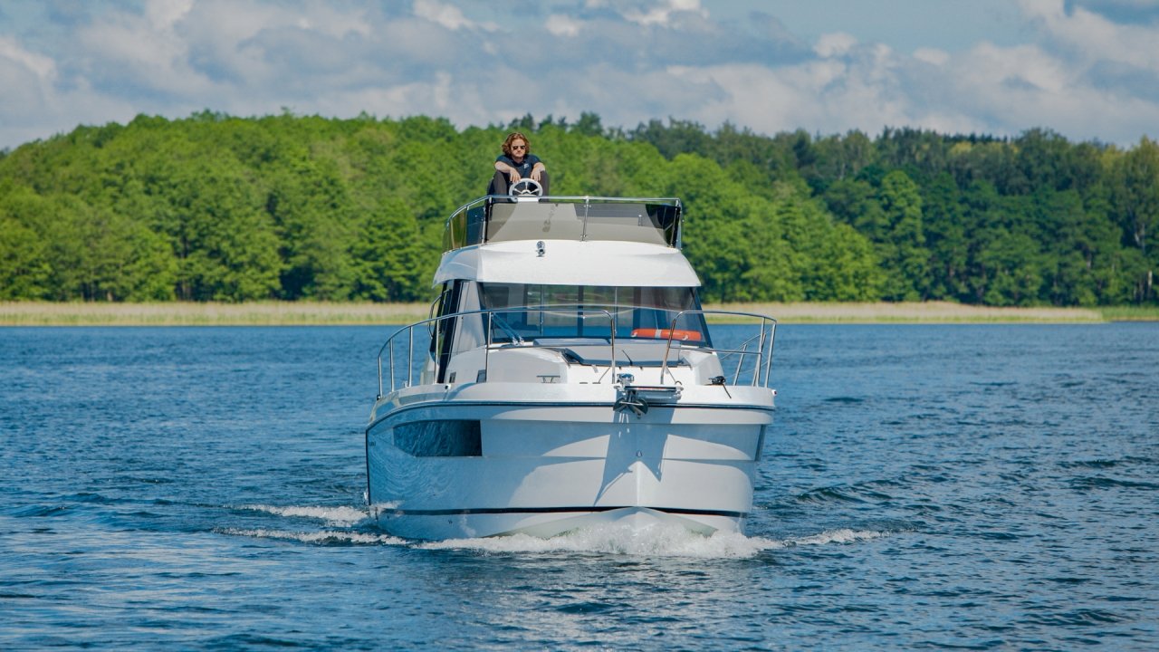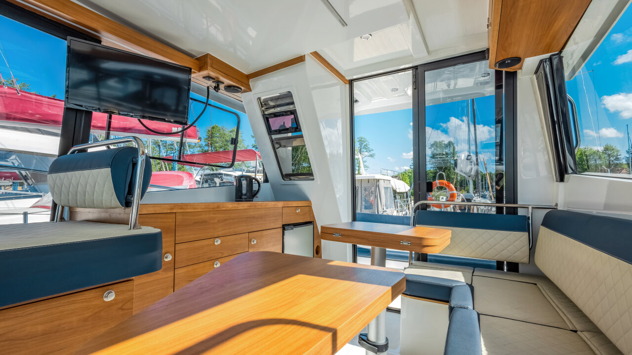 Platinum 35 Fly Active V "Aurora" to wygodny jacht półślizgowy dla 8–10 osób. Idealny na rodzinne rejsy po Mazurach. Ta jednostka wyposażona jest w cztery zamykane kabiny.