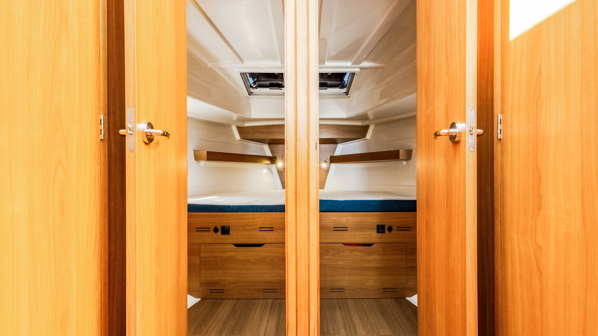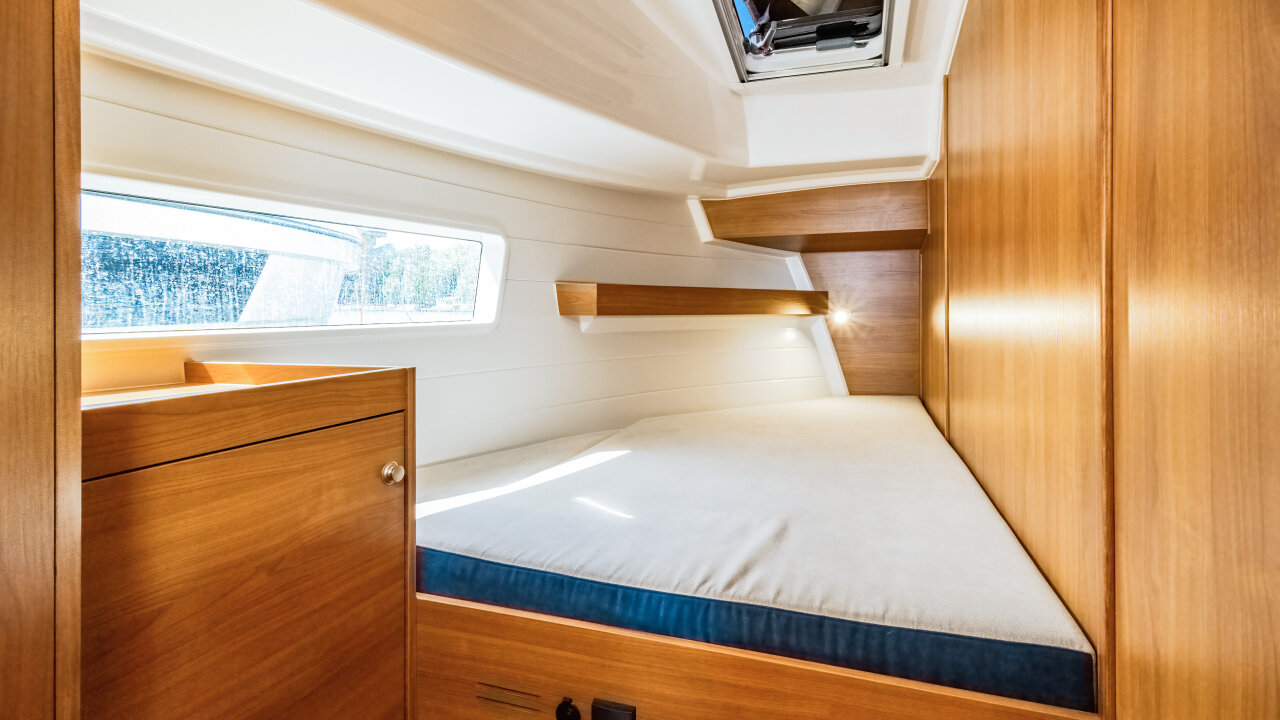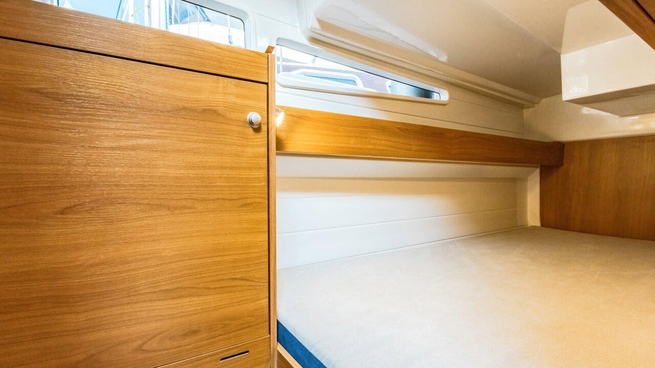 • 4 kabiny dwuosobowe z szafkami, portami USB i oświetleniem LED