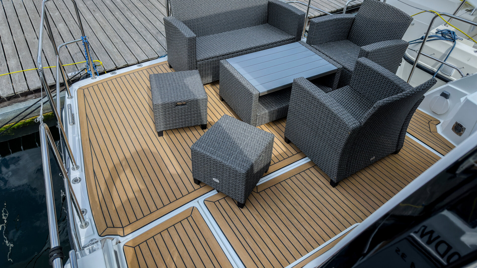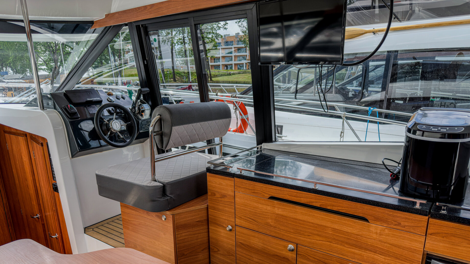 Platinum 40 to jacht z kokpitem salonowym, na którym przestrzeń podzielono na strefę dzienną i nocną. Salon z Hard Topem otoczony został panoramicznymi oknami. Znajduje się w nim funkcjonalny kambuz z możliwością montażu aż 110 l lodówki, zmywarki oraz dodatkowych szafek. Komfort użytkowy jednostki dodatkowo podnosi dzielony stół oraz duża kanapa. W części dziennej znajduje się główne stanowisko sternika. Całość może być zamykana zintegrowaną roletą lub przeszklonymi drzwiami przesuwnymi. Kokpit salonowy został połączony z przestrzenną platformą kąpielową o powierzchni aż 9m². Stanowi ona idealną strefę wypoczynku z możliwością spersonalizowanej aranżacji przestrzeni. Dodatkowo całość może być wyposażona w otwierany miękki dach typu cabrio.