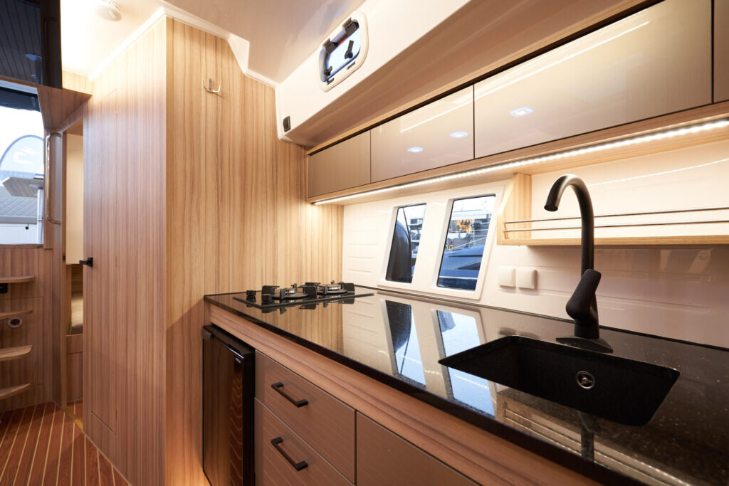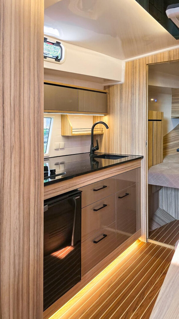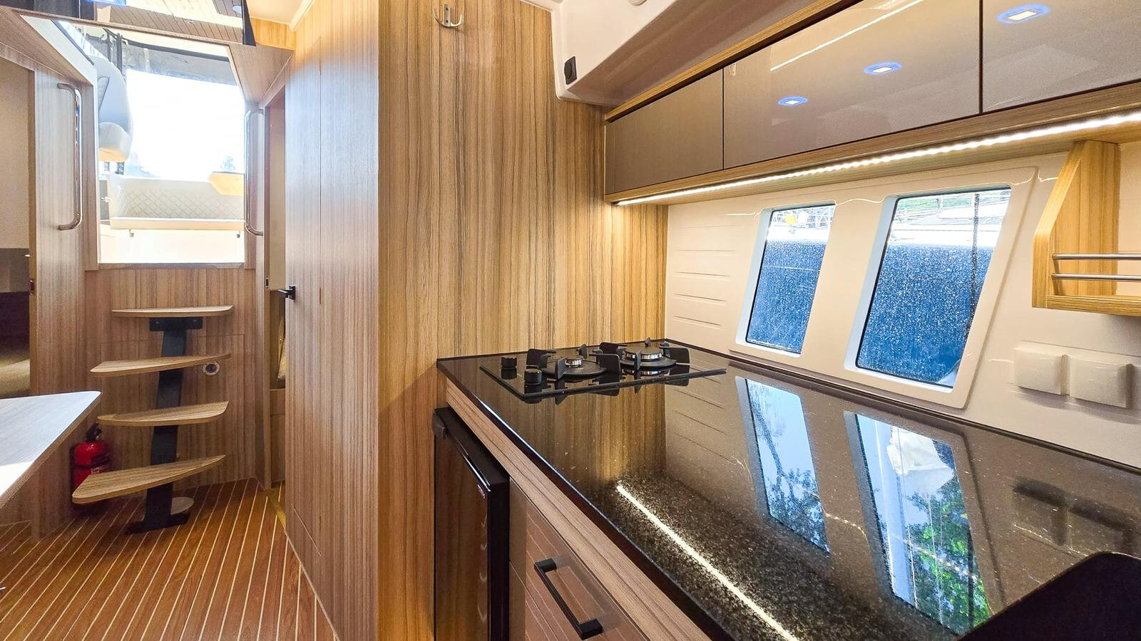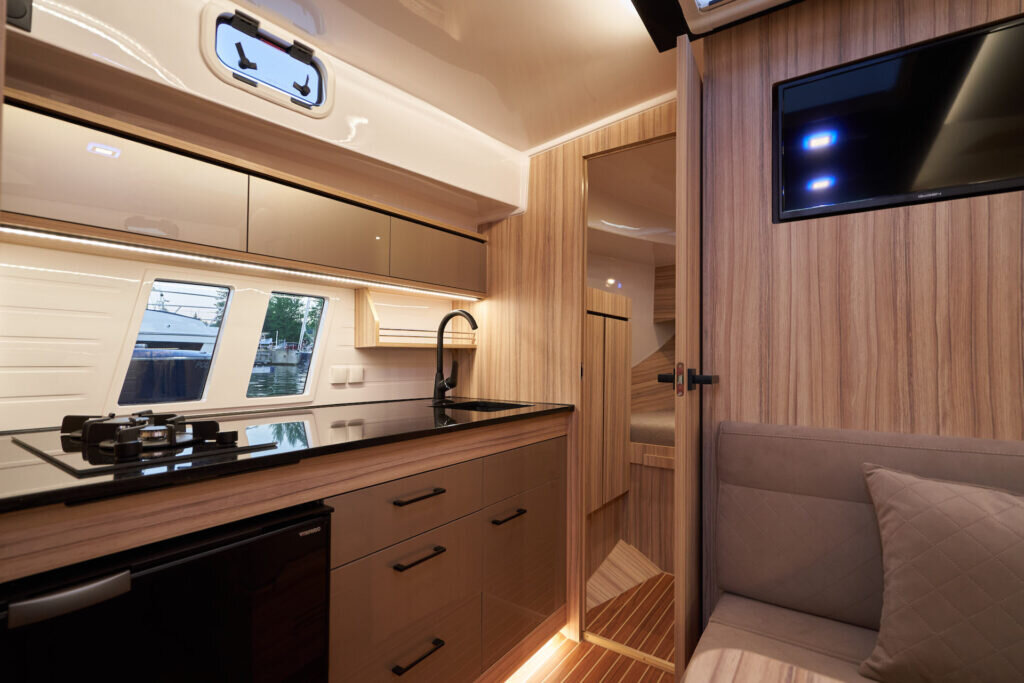 Stillo 31 „Bajka” to wygodny jacht turystyczny zaprojektowany z myślą o załogach, które chcą spędzać czas na wodzie w spokojnej, komfortowej atmosferze. Trzy zamykane kajuty zapewniają prywatność nawet większej grupie, a pełnowymiarowy kambuz i przestronna łazienka z prysznicem sprawiają, że jacht dobrze sprawdza się podczas dłuższych rejsów. Wnętrze jest jasne, funkcjonalne i sprzyja codziennemu użytkowaniu — od gotowania, po wieczorne rozmowy pod pokładem.