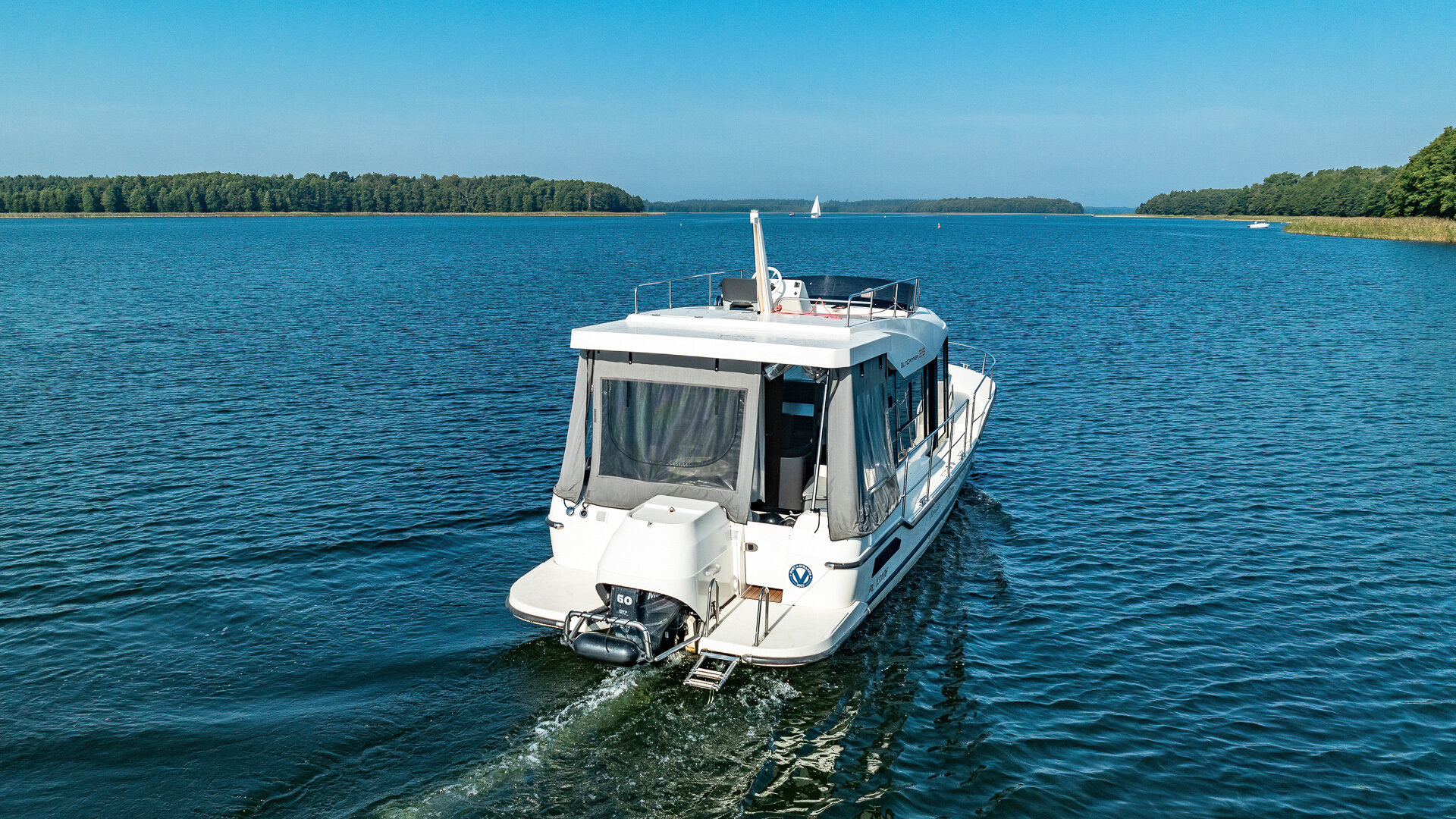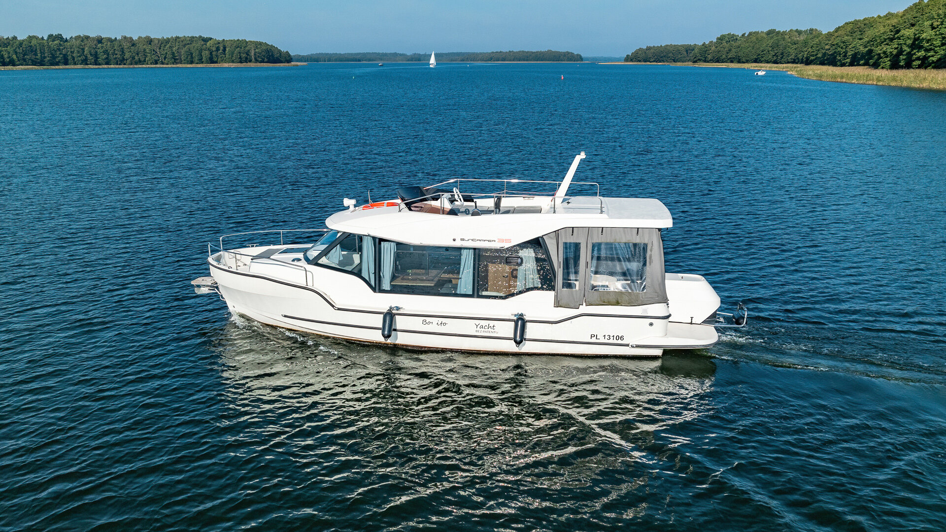 Jacht dostępny bez uprawnień motorowodnych !!! Jacht Suncamper 35 to nowość rynkowa 2018 roku dlatego tę nie mogło zabraknąć go w naszej flocie. Zastosowano w nim wiele praktycznych rozwiązań bazując na wieloletnim doświadczeniu konstruktorów jachtu. Dzięki temu wspólnie możemy cieszyć się niespotykaną pływalnością i wszechstronnością nowoczesnego jachtu motorowego, którym bez przeszkód można pokonywać wszystkie szlaki żeglarskie na Mazurach.